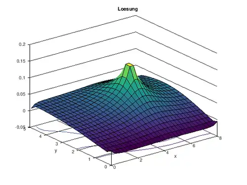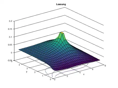Die oben aufgestellte Matrix S ist eine 9 x 9 Matrix. Diese Matrix ist allerdings gröber eingeteilt, als unser vorher definiertes Gitter mit viel kleineren Schritten. Das bedeutet, dass wir die Werte von S auf unsere Gitterpunkte interpolieren müssen. Dabei verwenden wir eine zweidimensionale kubische Interpolation.