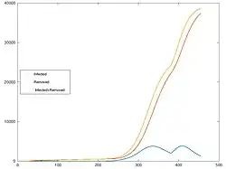 c=0.32450; %(Infektionsrate, Vorsicht k=c/B in unserem Modell k.u.(B-u)-w.u)