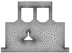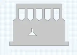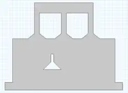 Hier wird ein Reinraum modelliert, der als Arbeitsfläche bzw. Werkbank dienen soll. Dabei handelt es sich um einen etwa 2m x 1m großen Glaskasten (Hier: Vereinfachung in 2D als Querschnitt), der mit drei Röhren an der Decke, die zur Lufteinströmung dienen, ausgestattet ist (siehe Abb.1). Daneben sind in den unteren Ecken die beiden Ausflüsse abgebildet. In der Mitte der Aparatur, wird ein Objekt (Hier: Erlenmayerkolben) simuliert, aus welchem ein Gas austritt.