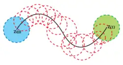 Auf einer Mannigfaltigkeit ist zusammenhängend das Gleiche wie wegzusammenhängend. Oft formuliert man daher die Fragen nach Verbundenheit und schrittweiser Verbundenheit entlang eines fixierten stetigen Weges, der und verbindet.