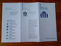 Ziel der Übungen ist die Erstellung eines Flyers für die Wikiversity. Wir werden uns im Design zunächst an den Ergebnissen des Projektes Wikiversity Flyer orientieren, wobei jedem Kursteilnehmer eine spätere Modifikation des Layouts und der Upload als Vorschlag für den offiziellen Wikiversity-Flyer nahe gelegt wird. Der gegenwärtige Entwurf von Lukas422 findet sich unter Datei:Wikiversity Flyer.pdf.