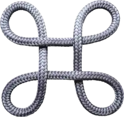 Links ein Schnürsenkelknoten, rechts ein mathematischer Knoten. Durch die Verbindung der Schnürsenkelenden merkt man sich die eigentliche Verknotung besser.