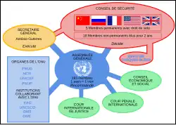 - Consolidation du savoir déjà acquis: 6 organes, Conseil de sécurité, Conseil économique et social, Assemblée Générale, Secrétaire Général (Ban Ki-moon), Cour internationale de Justice, Conseil de tutelle.