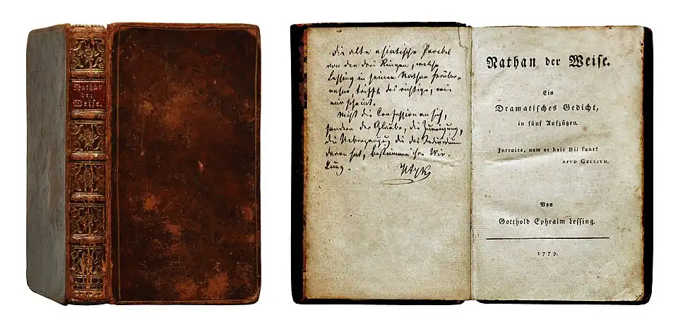 Lessing, G. E. : Nathan der Weise. Ein dramatisches Gedicht, in fünf Aufzügen,