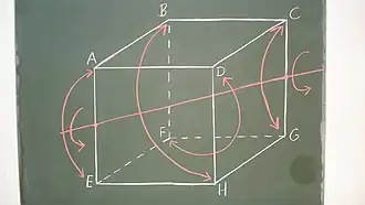 gegebenen Kanten definiert ist. Gibt es um diese Achse eine Drehung