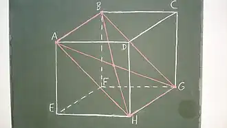 Jeder der acht Eckpunkte des Würfels definiert zusammen mit dem gegenüber liegenden Eckpunkt eine Raumdiagonale