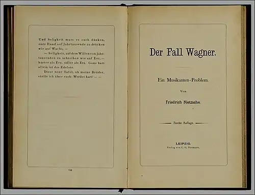 Nietzsche, Friedrich: Der Fall Wagner. Ein Musikantenproblem. Leipzig: C. G. Naumann, 57 S.