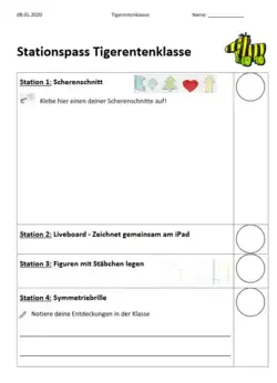 Diese Lernumgebung befasst sich mit dem Themengebiet der „Geometrie". Der Schwerpunkt liegt hierbei auf dem Teilbereich der „Symmetrie“. Zunächst gibt es im Plenum eine kurze Einführung in das Themengebiet und in die Bearbeitungs-methodik. Das Themenfeld wird hier im Rahmen einer Stationsarbeit erarbeitet. Die Kinder sollen die Thematik selbstständig entdecken. Es gibt vier Stationen. Zwei davon sind analog und zwei digital zu bewältigen. Die Schüler und Schüle-rinnen (SuS) werden jegliche Stationen in Tandems bewältigen. Die Kinder führen bei der Stationsarbeit den „Stationspass“ mit sich. Dieser ist teilweise in die Auf-gabenstellung mit eingebunden (einkleben und notieren von Entdeckungen). Am Ende jeder Stationsarbeit dürfen die SuS die absolvierte Station als erledigt ab-stempeln. Abschließend wird gemeinsam der Symmetriebegriff definiert und anhand einer kurzen bildlichen Aufgabe gefestigt. Die SuS können so ihre Entde-ckungen reflektieren und ihre Vorstellungen zur Symmetrie aufbauen.