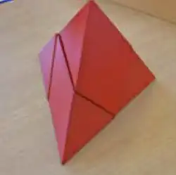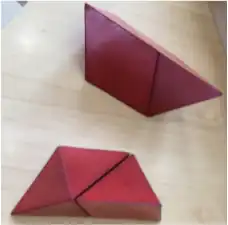 Aus vier gleichen Teilen lässt sich eine Pyramide zusammensetzen.