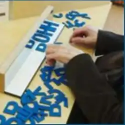 Das Exponat enthält nur Buchstabenteile, die sich durch ihre Spiegelbilder zu ganzen Buch-staben ergänzen, was den Teilnehmern die Durchführung des Experiments wesentlich erleichtert.