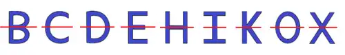 Die Buchstaben aus dem Exponat haben jeweils eine waagerechte Symmetrieachse: