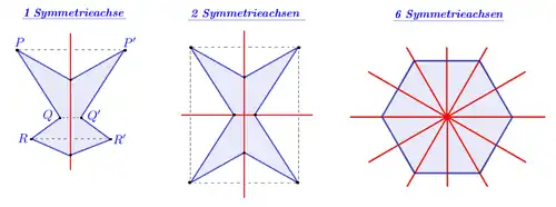 Wie in der unteren Abbildung ersichtlich ist, können Figuren eine Vielzahl von Symmetrieachsen haben.