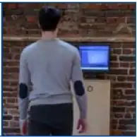 Bei diesem Exponat erstellt der Schüler durch seine eigene Bewegung ein Weg-Zeit-Diagramm, wobei die Werte der vorhandenen Funktion (d.h. die Funktion des Schülers) den Abstand (in Metern) des Schülers zum Bildschirm angeben. Da sich der Schüler auf einer Meter langen Strecke vor- und zurückbewegen kann, liegen die Werte der Funktion zwischen und . Dadurch haben wir für den Wertebereich . Für den Definitionsbereich erhalten wir , da das Experiment Sekunden dauert.
