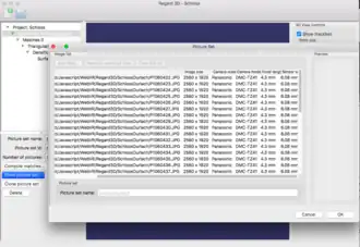 - (3) Regard3D-Add Picture Set: Füge eine Reihe von Bildern hinzu, die du mit deiner Digitalkamera aus verschiedenen Winkeln aufgenommen hast,
