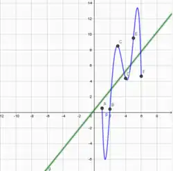 Beim Versuch, Ordnung bzw ein System in die Anordnung dieser Datenwolke zu bringen, kann man Geogebra verwenden. Dieses liefert beispielsweise ein Polynom 5. Grades: