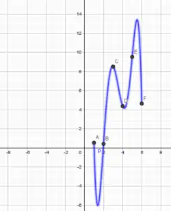 Um beide Funktionen miteinander zu verbinden (Punkt F=(6, 10.04)), müssen sie doch noch ein wenig verändert werden. Für den ersten Teil für ist die Funktion