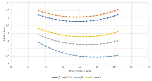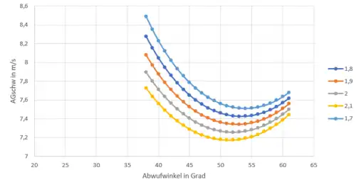 - Abwurfwinkel, Flugkurve, Abwurfgeschwindigkeit