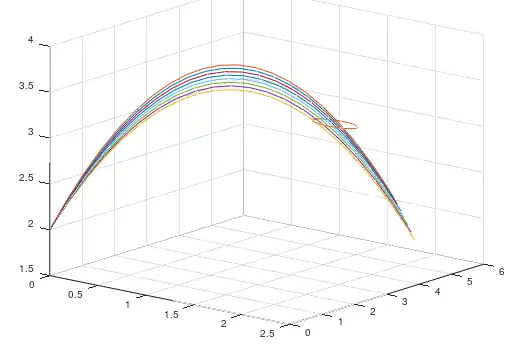 Die Geschwindigkeiten müssen wir nun integrieren, um so die Bewegungsgleichungen in x- und y-Richtung in Abhängigkeit von der Zeit zu erhalten. Diese Integrale bestimmen wir näherungsweise mit der Trapezregel. So erhalten wir folgende Flugkurve.