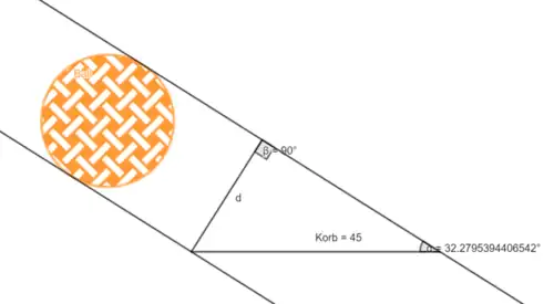 - Welcher ist der flachste Einfallwinkel in den Korb (Ermittlung des minimalen Einfallwinkels mithilfe von Trigonometrie)