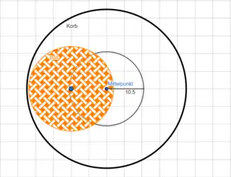 - Wie weit kann der Mittelpunkt des Balls von der Mitte des Korbes abweichen und wie beeinflusst dies den Wurf? (Maximale Abweichung mithilfe von Messen und Zeichnen)