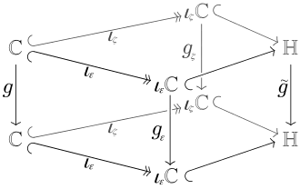 ↑Letzteres ist aber nicht hinreichend, denn die Funktion ist trotz wegen nicht einbettbar. Sind jedoch bei solchen Funktionen die Cauchy-Riemannschen Differentialgleichungen erfüllt, so folgt aus der Ungeradheit von die Geradheit von (jeweils in der zweiten Variablen) und damit die Einbettbarkeit in die Quaternionen. Im Gegensatz zu ist die Funktion einbettbar mit der Fortsetzung