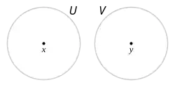 Ein topologischer Raum heißt hausdorffsch, wenn es zu je zwei verschiedenen Punkten offene Mengen und mit , und mit gibt.
