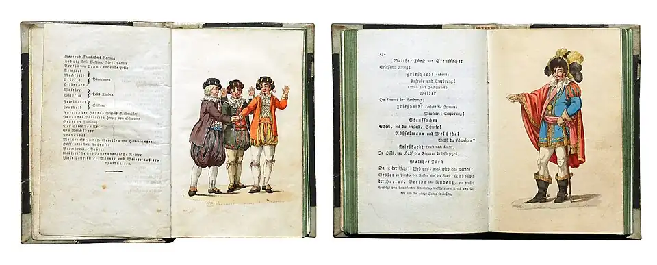 Schiller, Friedrich: Wilhelm Tell. Schauspiel. Tübingen: Cotta 1804, 241 S., mit kolorierten Kupferstichen von Georg Melchior Kraus. Erstdruck.