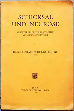 Schultz-Hencke, H.: Schicksal und Neurose. Versuch einer Neurosenlehre vom Bewusstsein her. Jena: G. Fischer 1931, Erstausgabe.