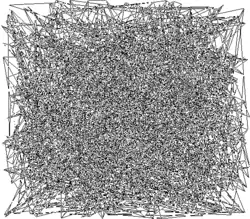Die folgende Tabelle zeigt ein Netz, dessen Neuronen in einem Gitter angeordnet sind und zu Beginn zufällig im Raum verteilt sind. Es wird mit Eingabereizen aus dem Quadrat trainiert, die gleichverteilt sind.
