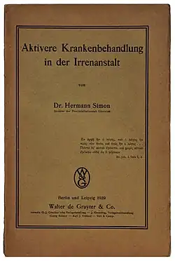 Simon, H.: Aktivere Krankenbehandlung in der Irrenanstalt. Berlin und Leipzig: W. de Gruyter & Co. 1929, Erstausgabe.