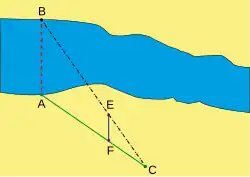 Eine Anwendung des Strahlensatzes. Man kann den Abstand über den Fluss berechnen, ohne ihn zu überqueren.