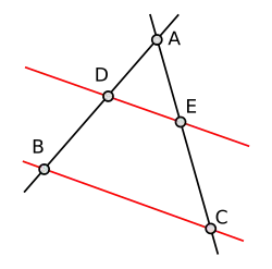 Der vorstehende Satz besagt insbesondere, dass sich in der beschriebenen Situation entsprechende Seitenlängen der beiden Dreiecke