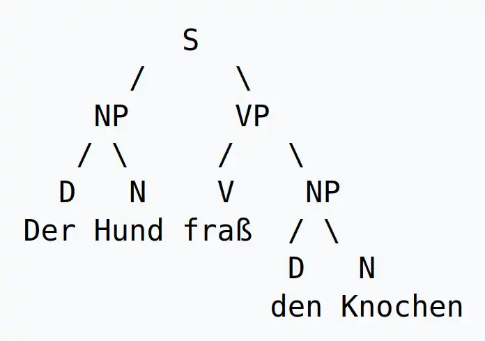 [S [NP [D Der ] [N Hund ] ] [VP [V fraß ] [NP [D den ] [N Knochen ] ] ] ]