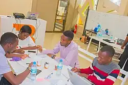 - (Arbeitsaufträge in Wikiversity) Die Arbeitsaufträge können direkt in Wikiversity als Lernaufgabe formuliert werden, die man sich für die Gruppenarbeit noch einmal genauer ansehen kann. Das ermöglicht auch eine Vorbereitung von Gruppenmitgliedern, denen ggf. noch Lernvoraussetzungen fehlen, da Sie wissen, was in der Gruppenarbeit gemacht werden sollte. Die eigentliche Aufgabe in der Videokonferenz kann dann durch leicht abgewandelt sein und nicht exakt der Aufgabe in Wikiversity entsprechen. Damit können auch komplexere Aufgaben gelöst werden. Problem ist, das sich leistungsschwächere Teilnehmerinnen in einer Lerngruppe sich trotzdem nicht vorbereiten.