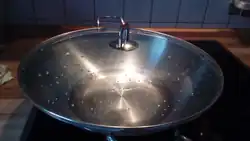 - (Wassenentsalzung durch Verdunstung und Kondensation) Verwenden Sie dazu salziges Wasser im Topf und sammeln Sie das das Kondenswasser. Überlegen Sie mit den Schülerinnen und Schülern, wie sie den Wasserdampf bzw. das Kondenswasser über dem Topf sammeln können. Vergleichen Sie Methoden der Schülerinnen und Schüler bzgl. der gesammelten Wassermenge. Vergleichen Sie den Geschmack von kaltem Salzwasser mit dem Geschmack von gesammeltem Kondenswasser (Geschmack der Salzabscheidung).