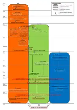 Die 169 globalen Zielvorgaben der 2030-Agenda müssen national umgesetzt werden.[5] Deutschland wollte mit gutem Beispiel vorangehen und hat im Rahmen des Hochrangigen Politischen Forums für Nachhaltige Entwicklung (HLPF, engl.: High-level Political Forum on Sustainable Development) am 19. Juli 2016 als eines der ersten Länder über die nationale Umsetzung der Agenda berichtet.[5][46] Das HLPF soll auf globaler Ebene eine zentrale Rolle bei der Umsetzung der Agenda spielen.[22] Von der Bundesregierung bereits beschlossen wurde ein Nationales Programm für nachhaltigen Konsum[7][47] und die Fortschreibung des Deutschen Ressourceneffizienzprogramms (ProgRess II), in das Ziele und Maßnahmen zur Umsetzung der SDGs aufgenommen werden sollten.[5]