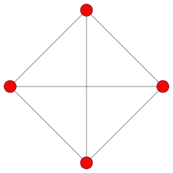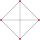 - ↑ Each great square vertex is √2 distant from two of the square's other vertices, and √4 distant from its opposite vertex. The other four vertices of the 16-cell (also √2 distant) are the vertices of the square's completely orthogonal square.[k] Each 16-cell vertex is a vertex of three orthogonal great squares which intersect there. Each of them has a different completely orthogonal square. Thus there are three great squares completely orthogonal to each vertex: squares that the vertex is not part of.[m]
