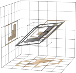 (There are only 18 transforms that do not look like a square or simple parallelogram from any side, namely those who's matrices have seven 1s.)