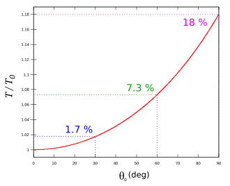 A plot of the ratio between the actual period of a pendulum and the approximate value obtained for small angles, as a function of the amplitude.