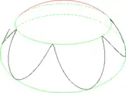 The figures to the right show the motion of the axis as a function of time for several values of with the curve for above. The bounds of the motion in all three cases is from to . How can we set up a top to execute these three classes of motion? If we release the axis of the top from a stationary position, the axis will first drop (nutation) because of gravity. As it drops the angular momentum about the vertical axis must be conserved so the tip of the top starts moving sideways as well (precession) -- yielding the motion in the middle figure. On the other hand if we release the tip of the top with some motion in the direction of the precession, we will get the lower figure. Finally to get the rather freaky looking motion in the top figure, we release the top with some motion opposing the direction of the precession.