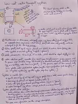 The Nabataeans had ceramic pipeline irrigation in the old days, which I believe could be an appropriate irrigation system. The Jacob Blaustein Institute conducts research to these nabataeans irrigation techniques. This in order to make low-cost irrigation systems to cope with the flooding periods (strange but true). It will help in preserving the rain that falls in these periods to water the crops for a great amount of time. Eg ceramic pipelines/terracotta canals can be a low cost solution see http://desert.bgu.ac.il/desert/EngSite.aspx?SiteId=3327&ItemId=4945 http://www.hackwriters.com/Nabataeans.htm http://web.archive.org/web/20110604203733/http://www.amnh.org/education/resources/rfl/pdf/petra_guide.pdf —Preceding unsigned comment added by 81.246.180.114 (talk) 18:37, 29 March 2009 (UTC)