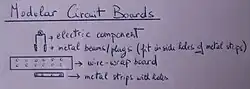 As described above, with component boards as strip boards, easy replacing/repairs of devices are possible (allowing the repair of broken boards by replacing certain components, rather than trowing away the entire board alltogether). For this, a simple? voltage meter is needed to test the components individually (eg whether they still let the power trough). This open-source elektor meter may be used herefore