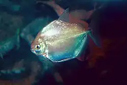 Metynnis argenteus, one of several species called silver dollars, are often kept in aquaria.