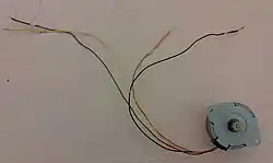 Stepper motors have 4 or more wires going into them. Not all motors with 4 or more wires are stepper motors. Typically these motors do not settle down and display a constant ohm value. Instead the resistance reading go to zero or infinity. Switching the polarity of the probes measuring resistance causes different resistance values.