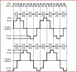 Attached are some diagrams of what a basic stepper motor wiring diagram will look like. Also attached is a chart that displays how a full voltage to position map must be created to operate a stepper motor.