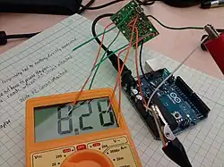 The next step was to figure out what Vin on the arduino was. Was there enough power coming out of that pin to power the RC receiver? A test was made. A 9 volt wall adapter was plugged into the arduino. 8.3 volts appeared on the pin. But could enough current be drawn from this pin? Would it cripple the Arduino?