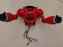 The breast plate is a speaker. There are 3 infared transmitters and 3 receivers. They are used for the "Home" function where the robot follows someone with the remote and are used to avoid collisions. This tutorial does not show how to restore this functionality with the arduino.