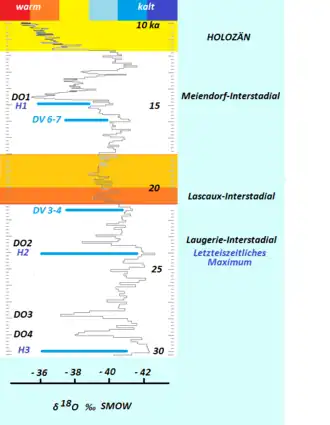 - ↑ 41.0 41.1 Sasha Naomi Bharier Leigh (2007). A STUDY OF THE DYNAMICS OF THE BRITISH ICE SHEET DURING MARINE ISOTOPE STAGES 2 AND 3, FOCUSING ON HEINRICH EVENTS 2 AND 4 AND THEIR RELATIONSHIP TO THE NORTH ATLANTIC GLACIOLOGICAL AND CLIMATOLOGICAL CONDITIONS. St Andrews, Scotland: University of St Andrews. pp. 219. https://research-repository.st-andrews.ac.uk/bitstream/handle/10023/525/Sasha%20Leigh%20MPhil%20thesis.pdf?sequence=1. Retrieved 2017-02-16.