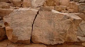 - ↑ Sources differ on specific date ranges, which necessarily varied over such a wide geographic expanse. One (Bard, Kathryn A. (1999), ed. Encyclopedia of the Archaeology of Ancient Egypt. London, Routledge, pg 863) gives "9000–5000 BP," or 7000–3000 BCE, for the duration of the subpluvial. Another (Wilkinson, Toby A. H. (1999), Early Dynastic Egypt. London, Routledge, pg 372) places the end of the subpluvial c. 3300 BCE.
