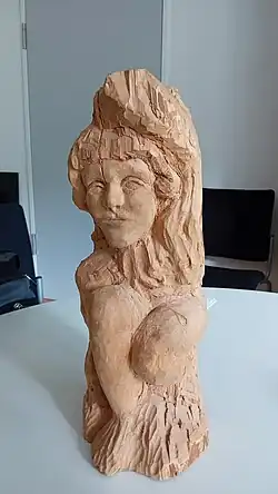 The following image shows an Anaglyph 3D of a wooden sculpture.